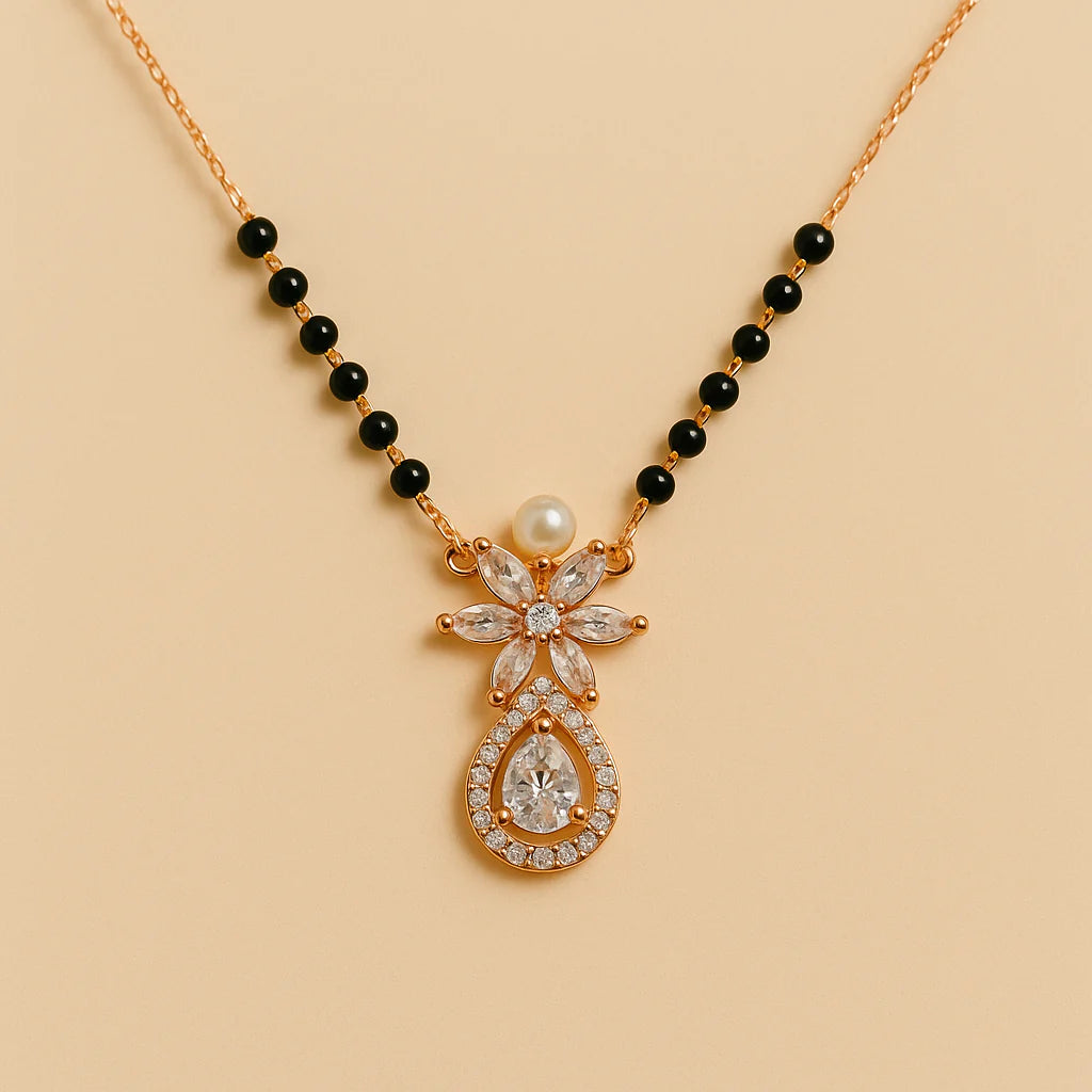 Ishara Modern Mangalsutra is where tradition meets contemporary charm. Designed for the modern woman, it features a sleek Rose gold-toned finish with a high-end look that complements both Indian and Western outfits.